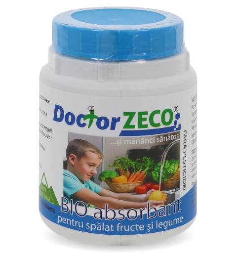 Bio absorbantul Doctor ZECO îndepărtează pesticidele prin spălare de pe suprafața tuturor fructelor și legumelor prin dubla activare. Doctor ZECO îndepărtează și metalele grele și radioactive, bacteriile și soluțiile cerate de pe suprafața fructelor și legumelor și este un produs 100% natural, obținut prin activarea dublă clinoptilolitului din zeolitul micronizat.