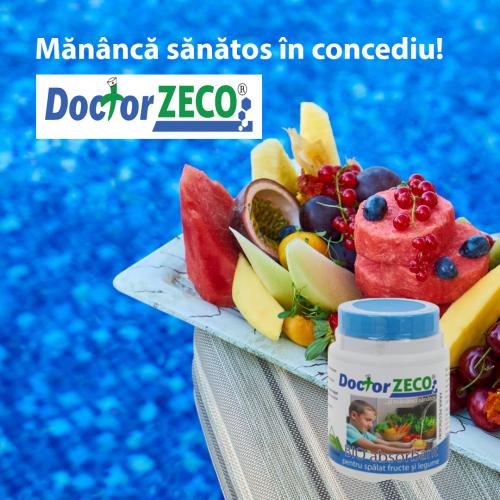 Bio absorbantul Doctor ZECO îndepărtează pesticidele prin spălare de pe suprafața tuturor fructelor și legumelor prin dubla activare. Doctor ZECO îndepărtează și metalele grele și radioactive, bacteriile și soluțiile cerate de pe suprafața fructelor și legumelor și este un produs 100% natural, obținut prin activarea dublă clinoptilolitului din zeolitul micronizat.